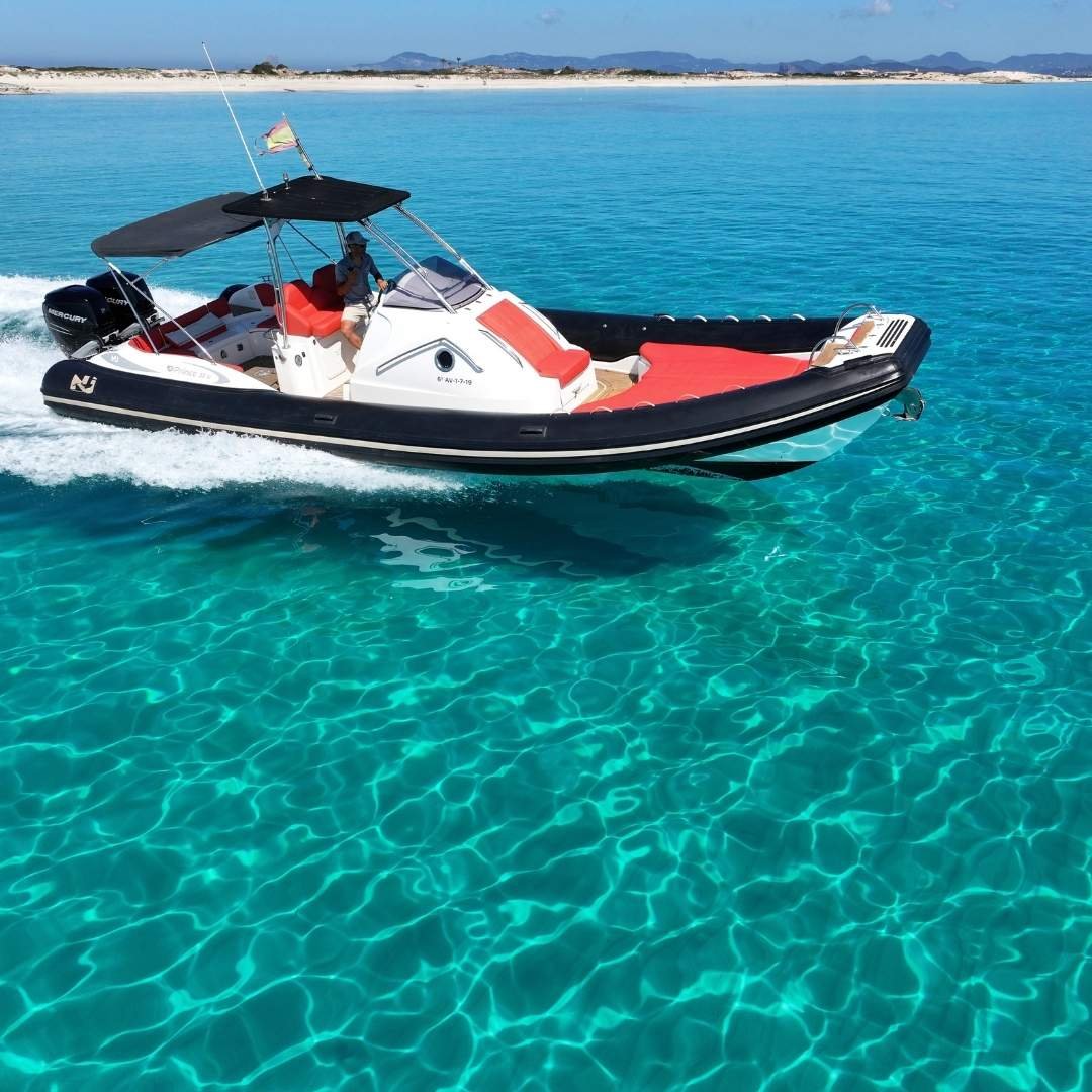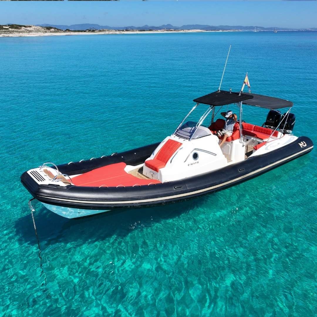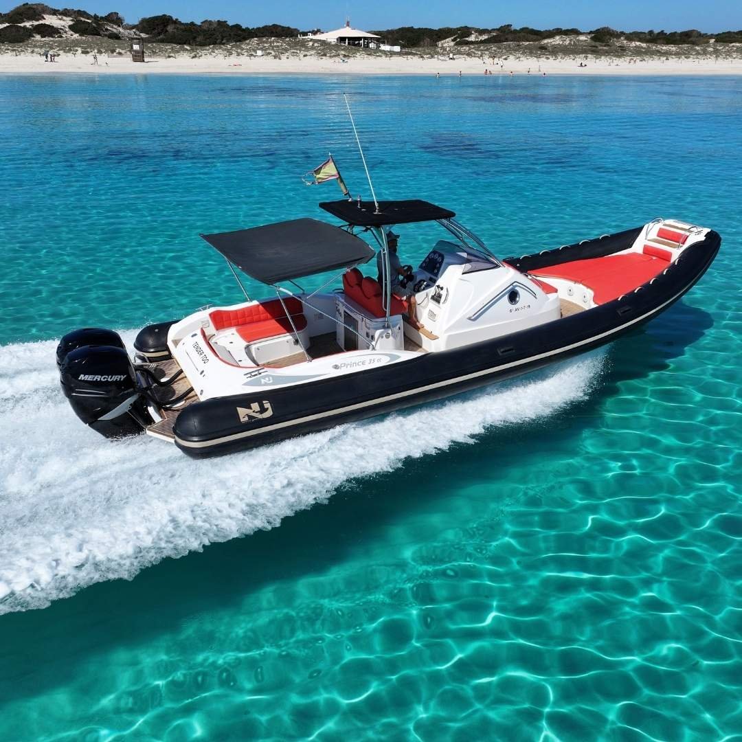 La Nuova Jolly 35 CC es una neumática de lujo que combina deportividad, amplitud y confort en una sola embarcación. Con una eslora de 11 metros y una manga de 3,77 metros, su diseño ofrece una gran versatilidad para salidas de día, excursiones exclusivas o traslados VIP en Ibiza. Propulsada por dos potentes motores Mercury Verado F300, garantiza una navegación fluida y rápida, con un consumo estimado de 90 litros/hora. Con capacidad para 12 pasajeros más patrón, es ideal para grupos que buscan una experiencia náutica premium.