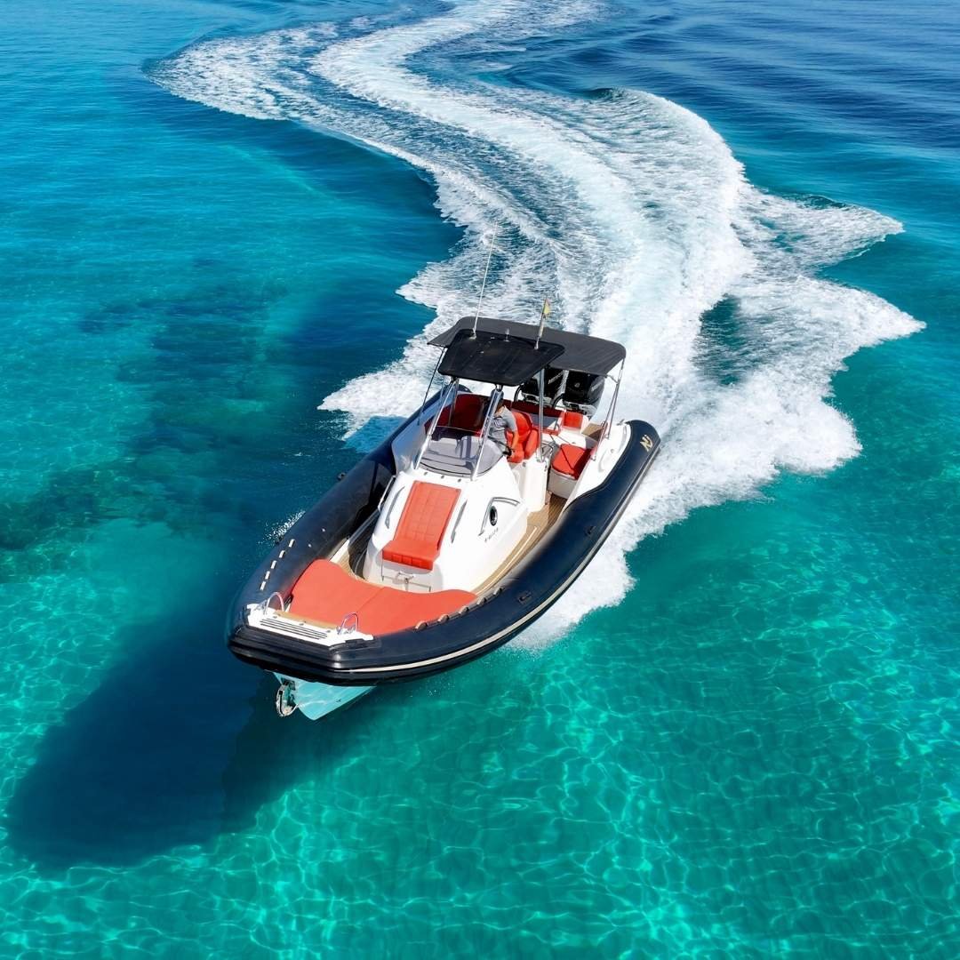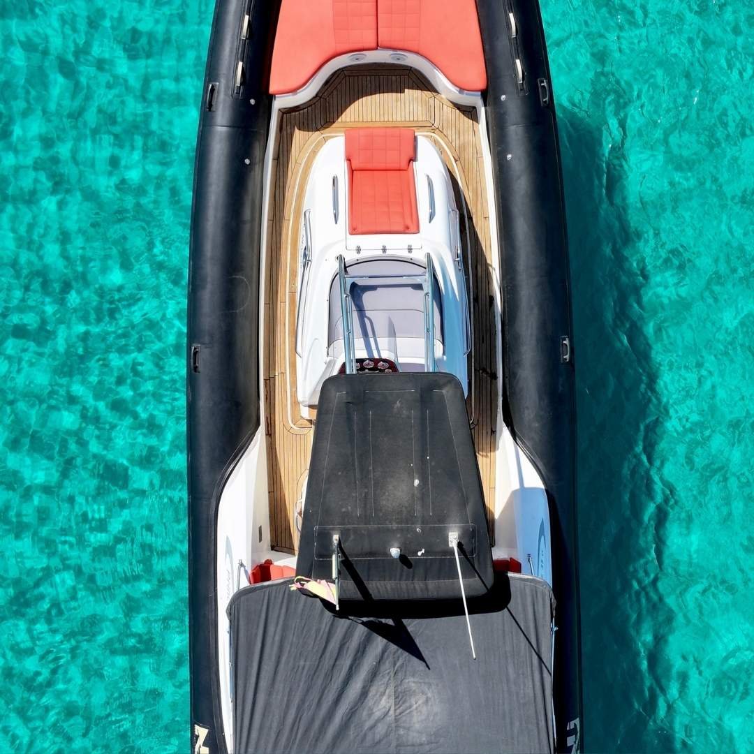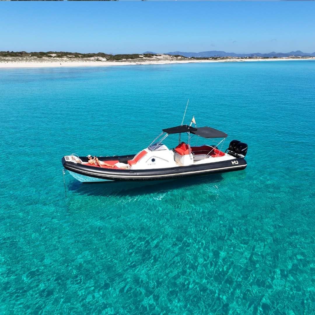 La Nuova Jolly 35 CC es una neumática de lujo que combina deportividad, amplitud y confort en una sola embarcación. Con una eslora de 11 metros y una manga de 3,77 metros, su diseño ofrece una gran versatilidad para salidas de día, excursiones exclusivas o traslados VIP en Ibiza. Propulsada por dos potentes motores Mercury Verado F300, garantiza una navegación fluida y rápida, con un consumo estimado de 90 litros/hora. Con capacidad para 12 pasajeros más patrón, es ideal para grupos que buscan una experiencia náutica premium.