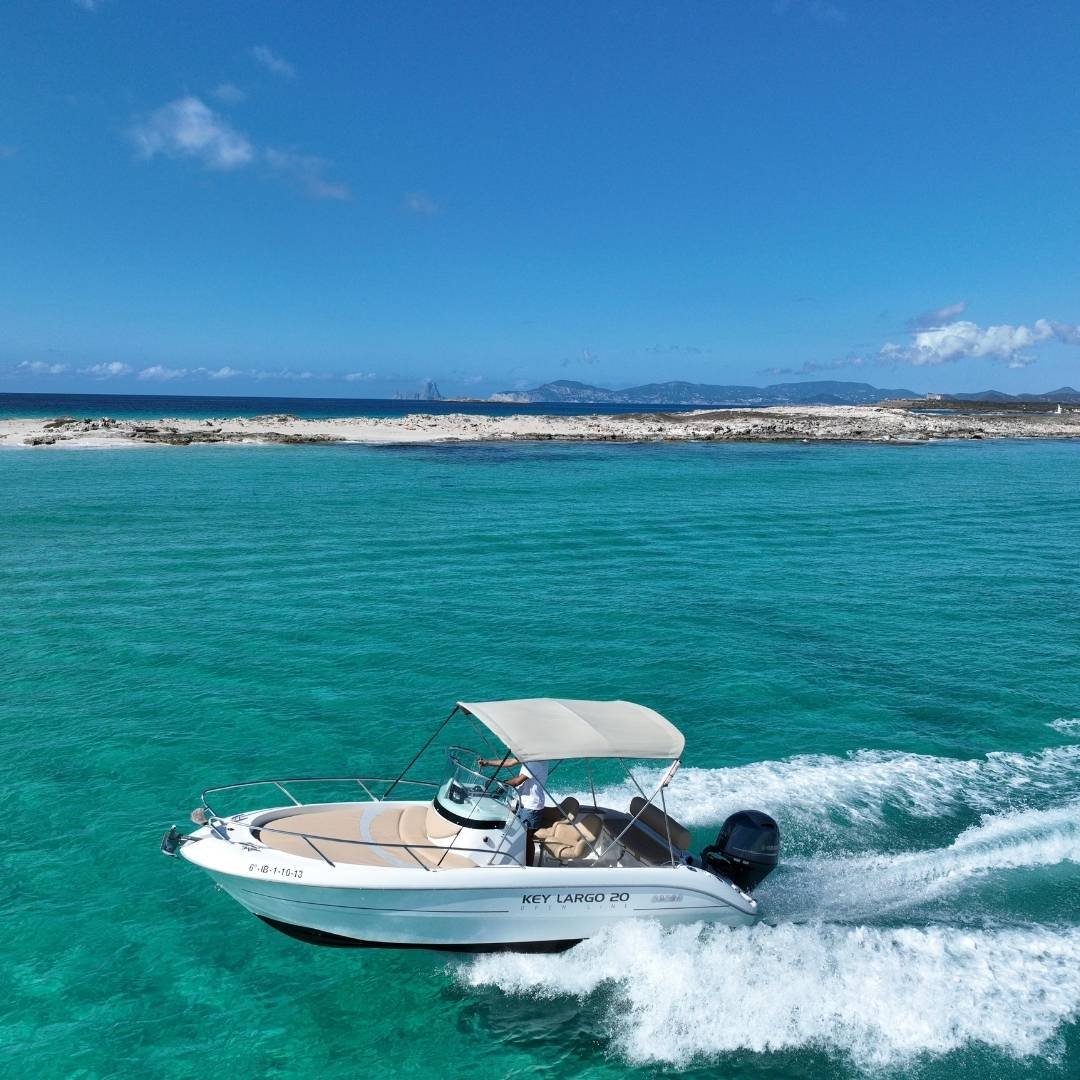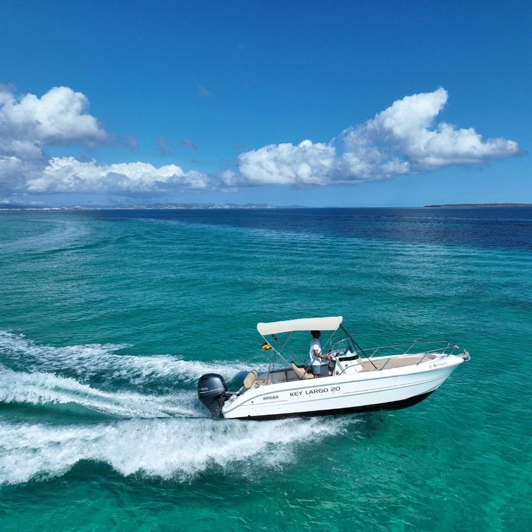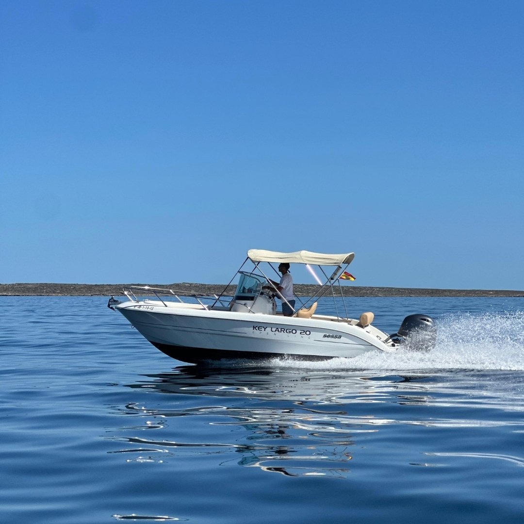 La Sessa Key Largo 20 es la opción ideal para quienes desean explorar la costa de Ibiza de forma elegante y práctica. Con una eslora de 6 metros y una manga de 2,30 metros, esta lancha abierta ofrece espacio suficiente para 5+1 personas, lo que la convierte en una elección perfecta para salidas en pareja, con amigos o en familia. Equipada con un motor Yamaha de 115 CV y un consumo de solo 25 litros por hora, combina eficiencia, maniobrabilidad y placer de navegación en una sola embarcación.