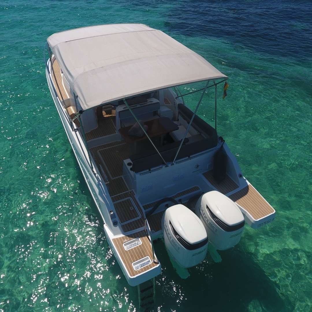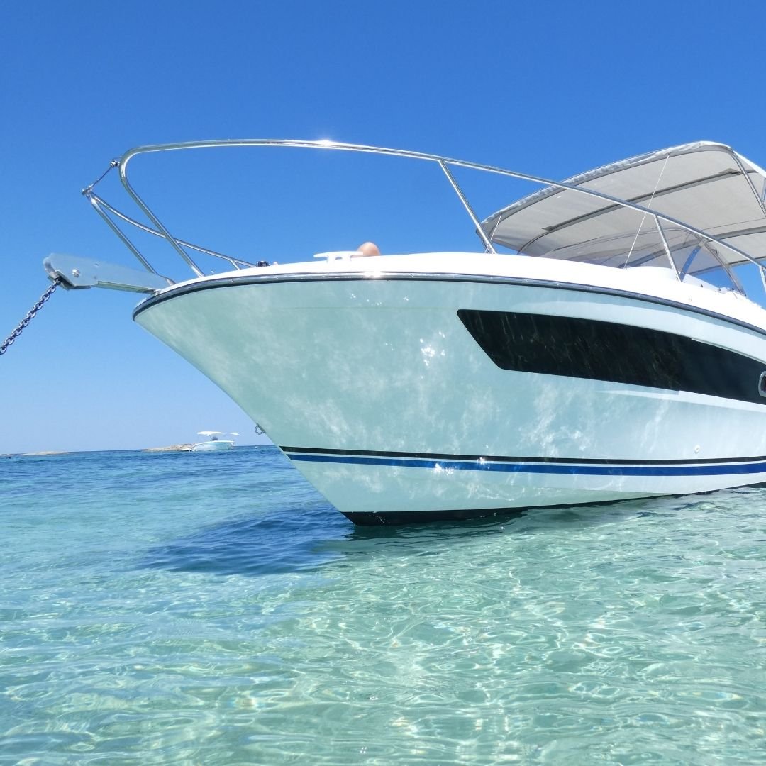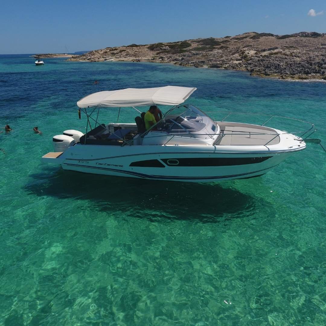 Diseñada para grupos de hasta 9 pasajeros más patrón, esta embarcación cuenta con dos cabinas, un baño completo y un amplio espacio de cubierta para relajarse. Ideal para escapadas costeras, eventos exclusivos o un día de relax en el mar, la Cap Camarat Thymar está equipada con ducha, toldo, sistema de sonido, equipo de snorkel, toallas y bebidas frías. Su salida desde Marina Botafoch permite acceder a rutas emblemáticas con facilidad.