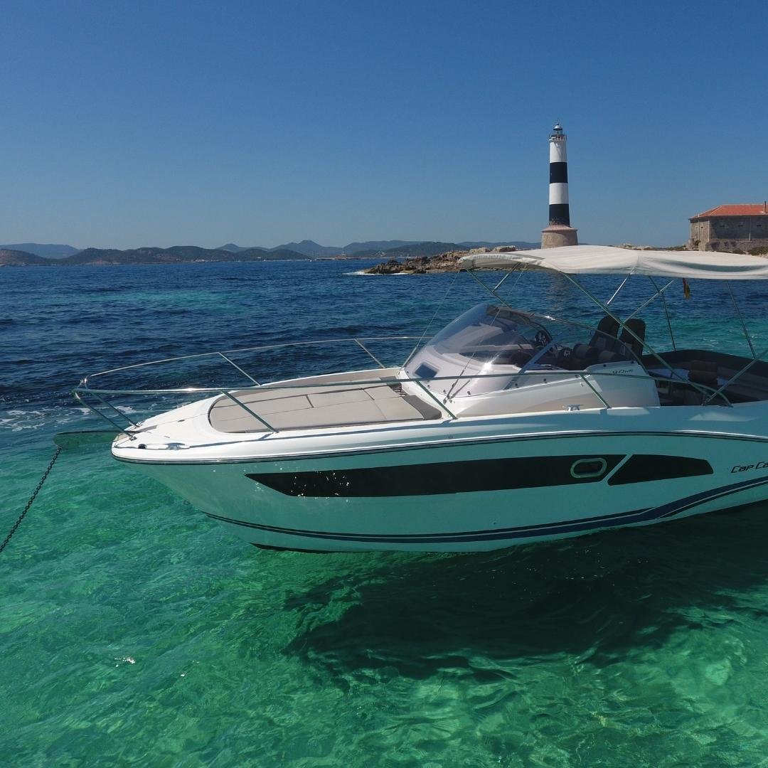 La Cap Camarat 9.0 WA es una lancha de lujo que combina versatilidad, eficiencia y elegancia en una embarcación compacta y potente. Con 9 metros de eslora, 3 metros de manga y una motorización doble de 250 CV, esta motora ofrece una navegación ágil y estable, perfecta para recorrer las costas de Ibiza y Formentera con estilo. Su consumo estimado de 90 litros por hora la convierte en una opción eficiente sin renunciar a la potencia.