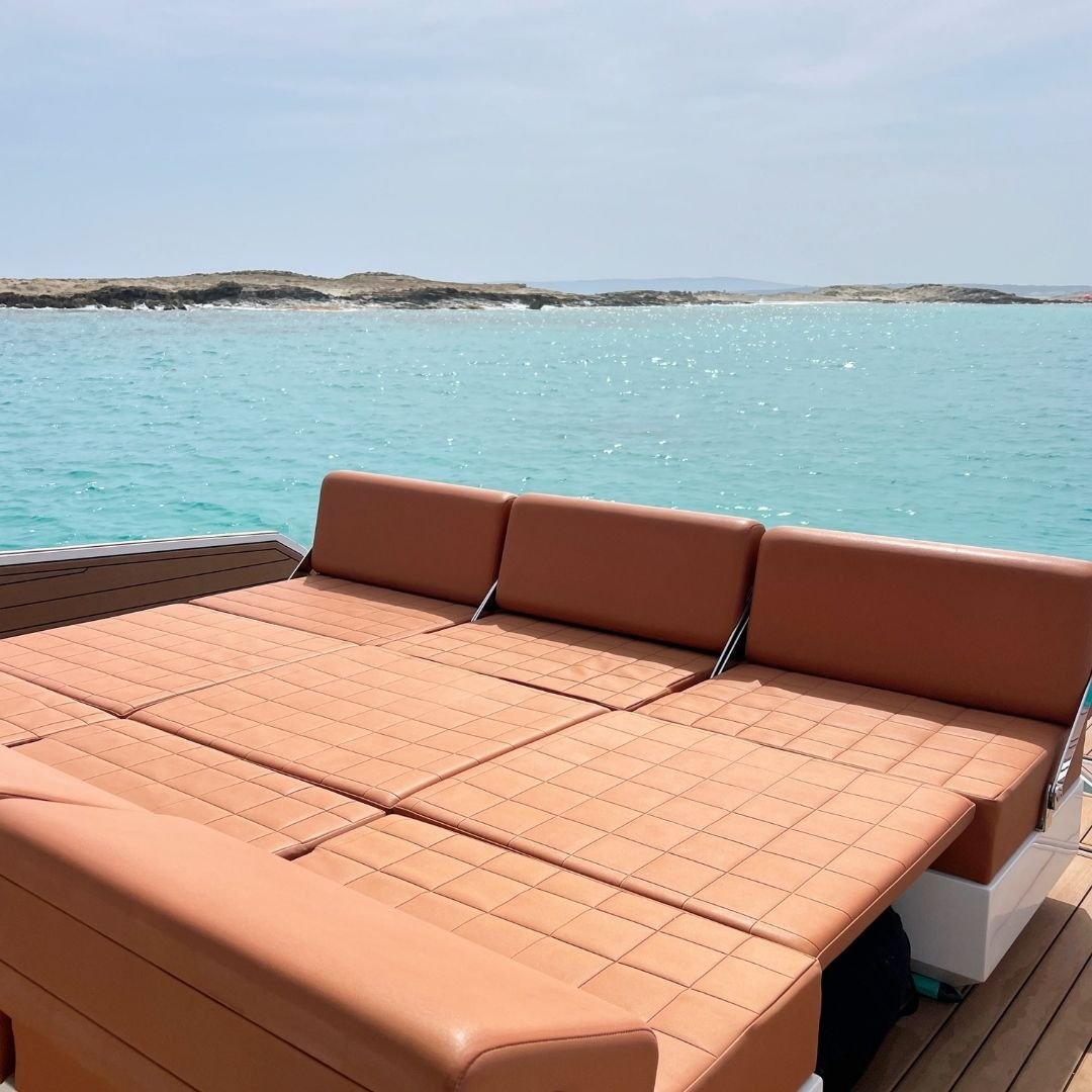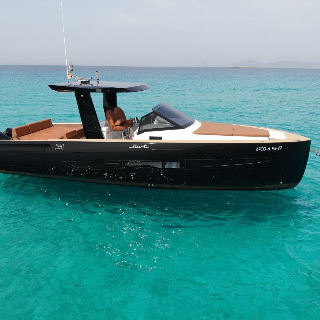 Fiart 35 – Martone, lancha de lujo elegante y versátil con capacidad para 9 personas. Perfecta para disfrutar de Ibiza con comodidad y estilo.
