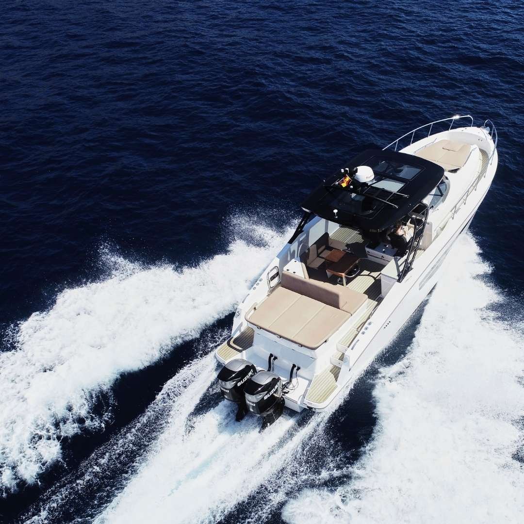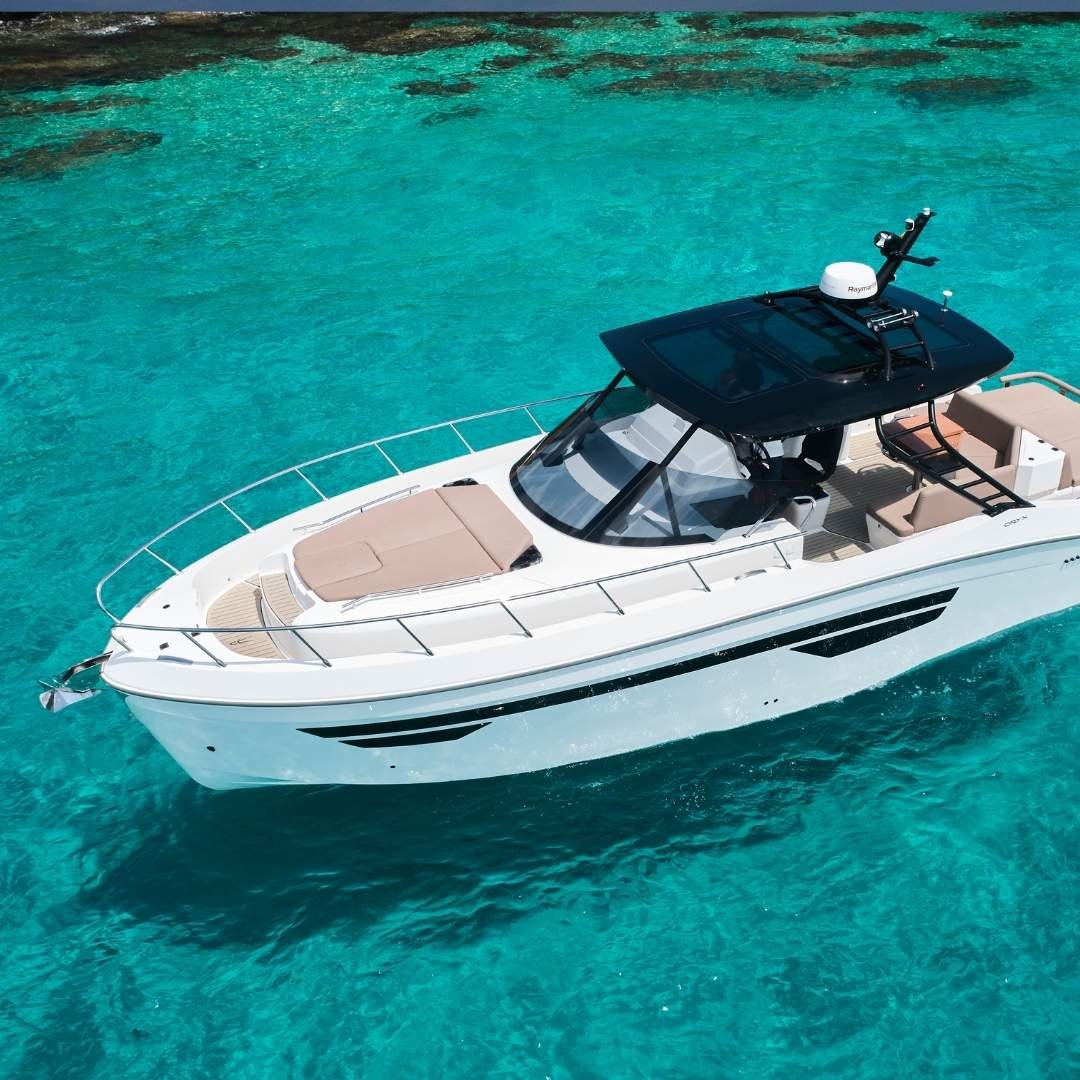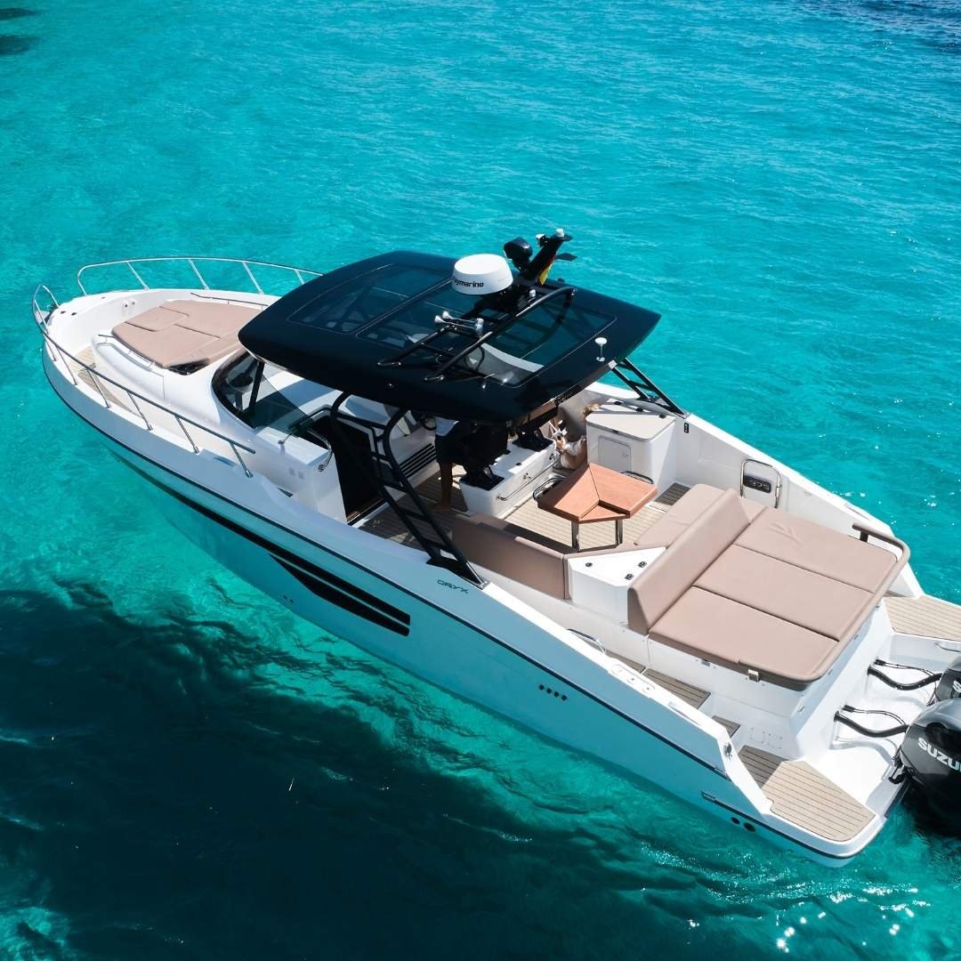 Equipada con aire acondicionado, generador de 220V, sistema de audio, solárium en proa y popa, ducha exterior, mesas interiores y exteriores, y una cuidada selección de bebidas y snacks, la Oryx 38 garantiza una navegación tan placentera como exclusiva. El patrón profesional está incluido, y el consumo estimado es de 120 litros por hora, siendo perfecta para rutas como Ibiza – Ses Illetes – Cala Saona.
