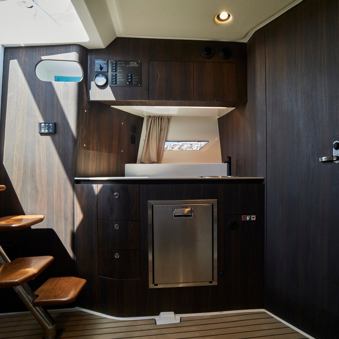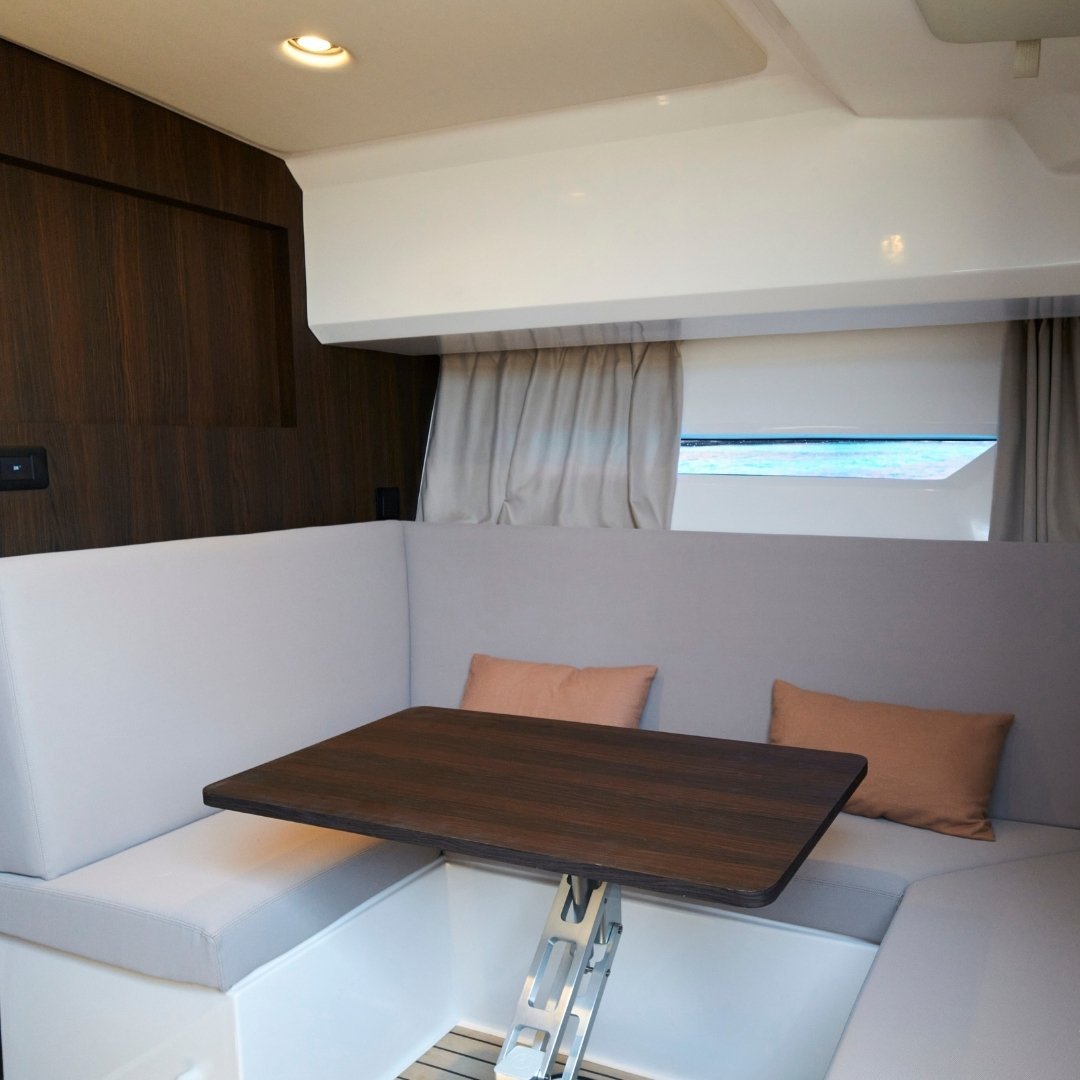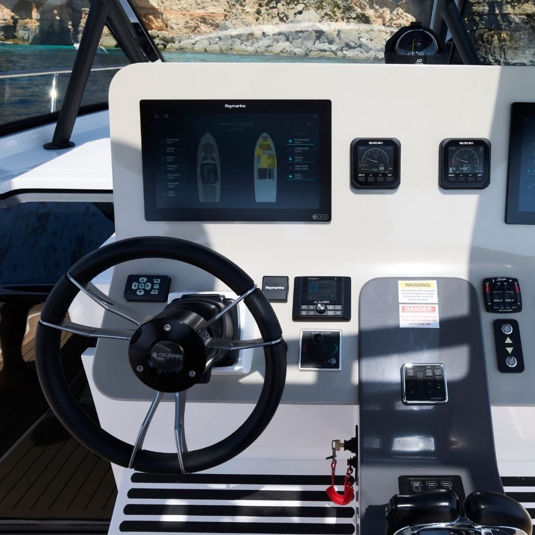 Equipada con aire acondicionado, generador de 220V, sistema de audio, solárium en proa y popa, ducha exterior, mesas interiores y exteriores, y una cuidada selección de bebidas y snacks, la Oryx 38 garantiza una navegación tan placentera como exclusiva. El patrón profesional está incluido, y el consumo estimado es de 120 litros por hora, siendo perfecta para rutas como Ibiza – Ses Illetes – Cala Saona.