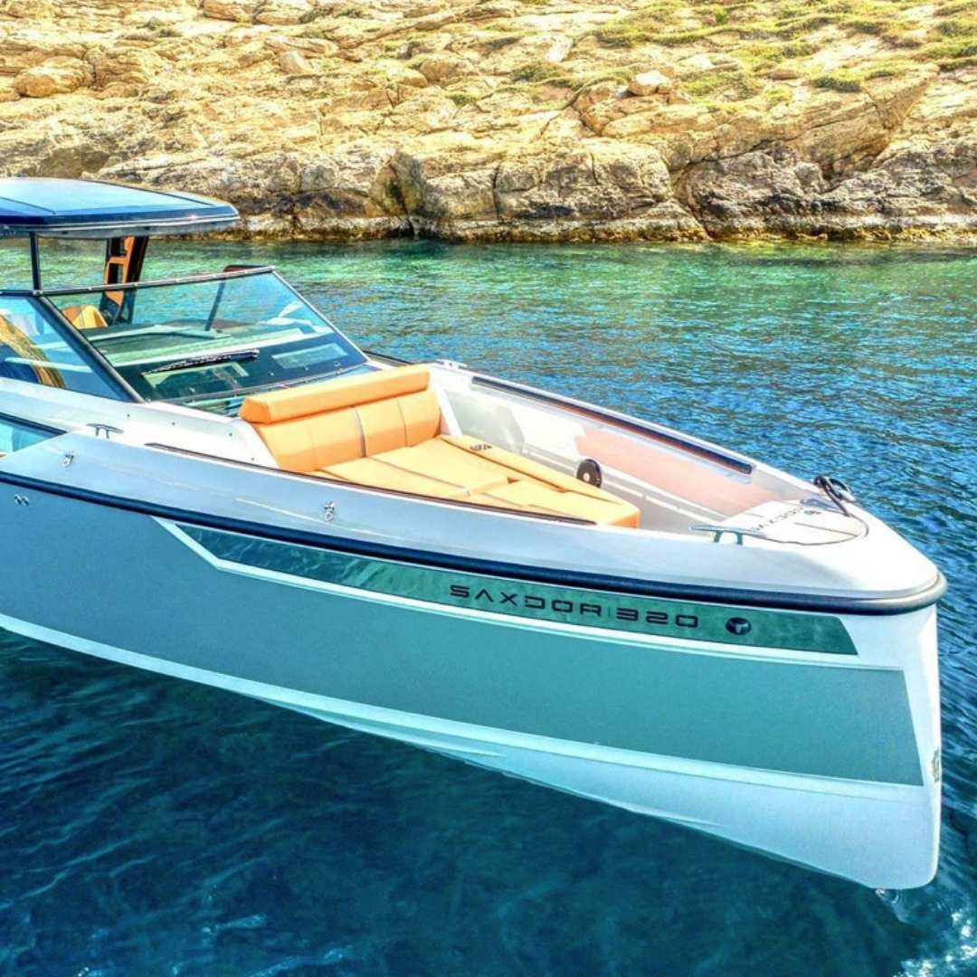 Saxdor 320 GTO, lancha de lujo de alto rendimiento con diseño escandinavo. Ideal para explorar Ibiza con estilo, potencia y máxima comodidad.