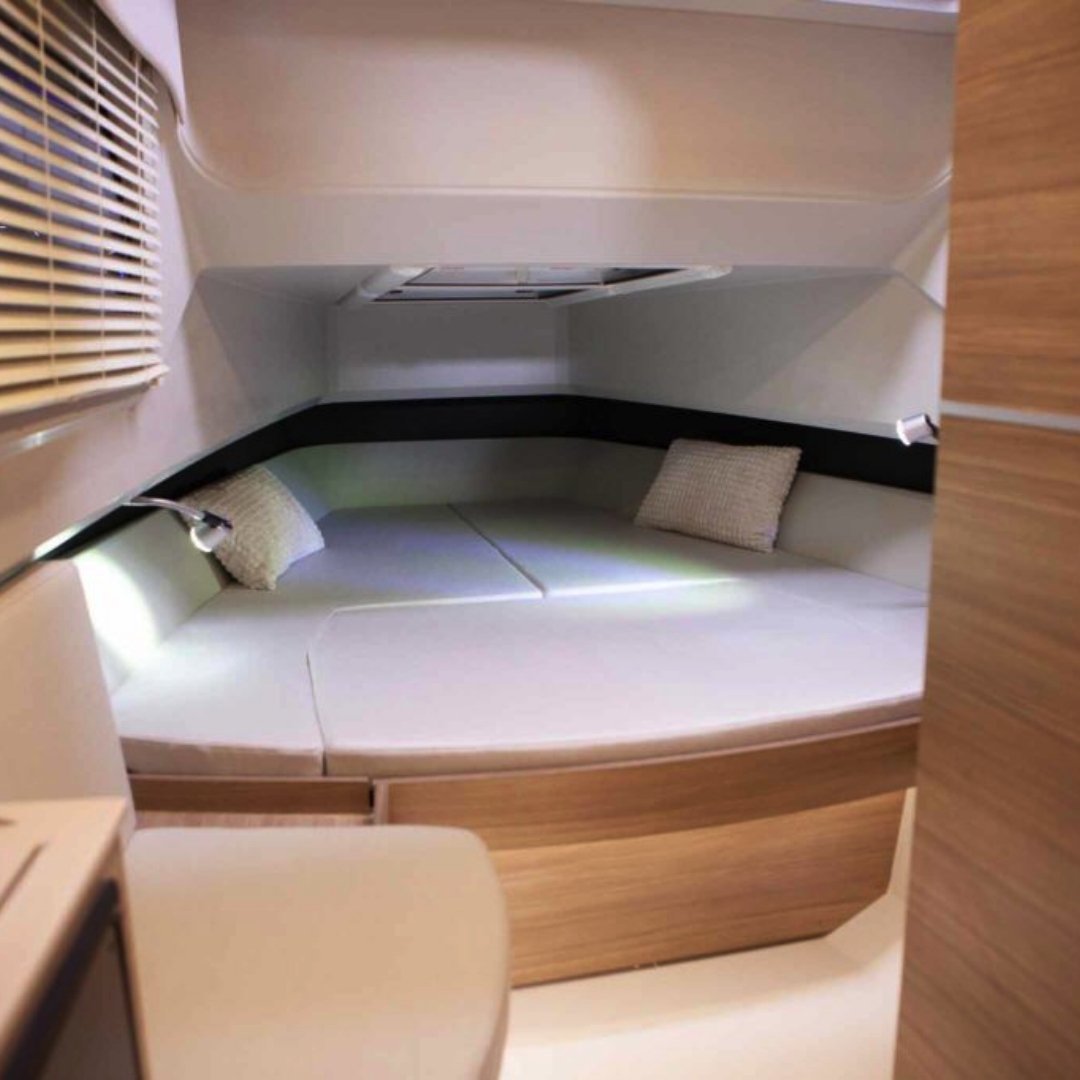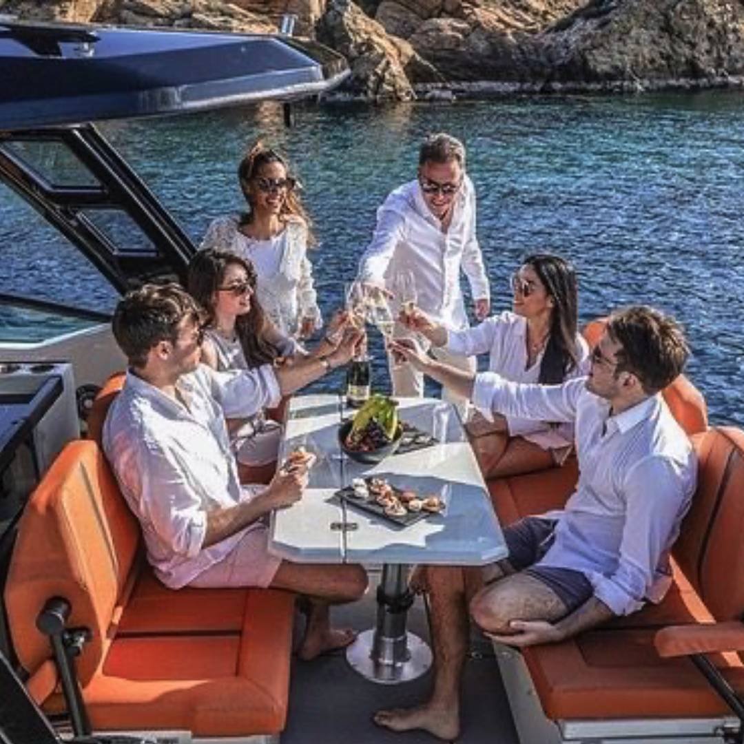 Pensada para grupos de hasta 8 pasajeros más patrón, la Saxdor 320 ofrece un camarote confortable con baño, ideal para descansar entre fondeos. Está equipada con conexión musical Bluetooth y USB, ducha exterior, equipo de snorkel, bebidas frías, y un entorno covidfree gracias a su protocolo de desinfección. Su base en Marina Botafoch permite un embarque ágil hacia las mejores rutas náuticas de la isla.