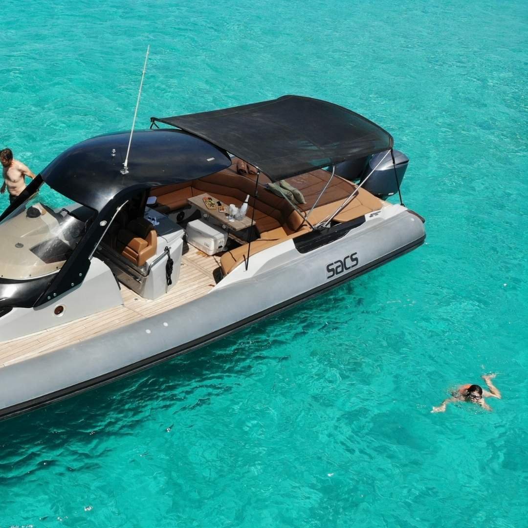 Disfruta del lujo y la potencia del SACS Strider 13 en Ibiza. Neumática ideal para navegar con estilo y confort en grupos exclusivos.