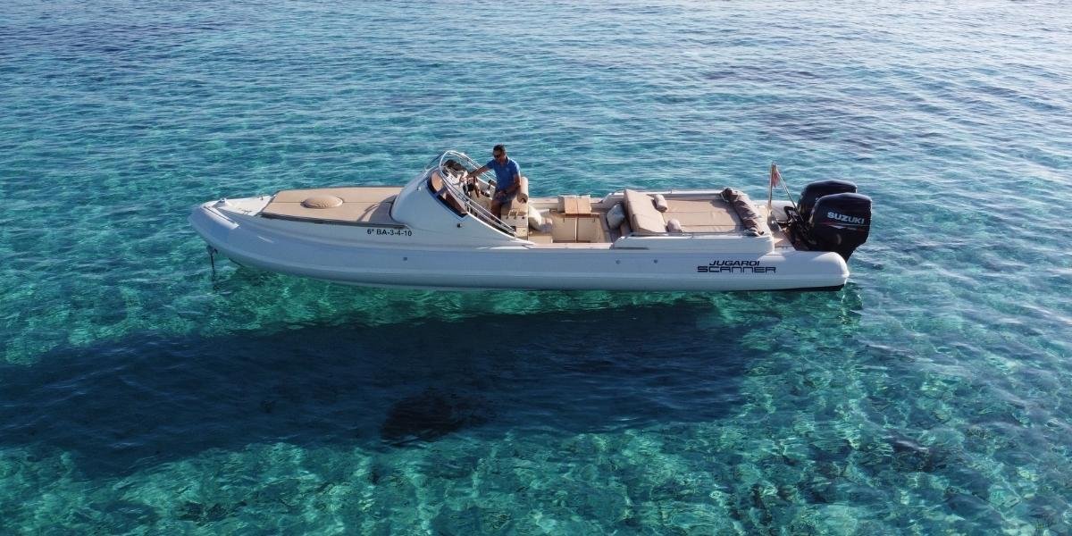 Vive Ibiza desde el mar con el Scanner Envy 970D, una neumática elegante y potente, ideal para disfrutar de una jornada náutica con máximo confort.
