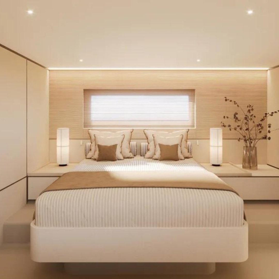 Con capacidad para 12 pasajeros de día y 6 personas para pasar la noche, este yate cuenta con 3 camarotes, 2 baños completos y una cabina adicional para tripulación, asegurando privacidad y servicio impecable. Sus motores 3 x IPS 650 de 480 hp proporcionan una navegación estable, eficiente y silenciosa, con una velocidad crucero de 24 nudos y máxima de 33. La experiencia se eleva con una plataforma de baño estabilizada, dos soláriums, terrazas laterales, aire acondicionado, generador, y bimini eléctrico.